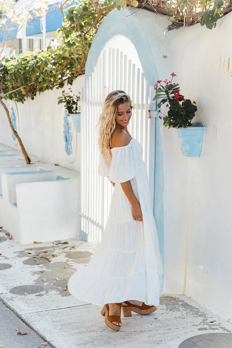 Introducing our most favourite Flora Maxi Dress. The jewel of any wardrobe, the Double Cotton Dress is an absolute must-have. With puff sleeves, square neckline, shirred bodice and tiered hem will complement all figures. Your new go-to for day to night.