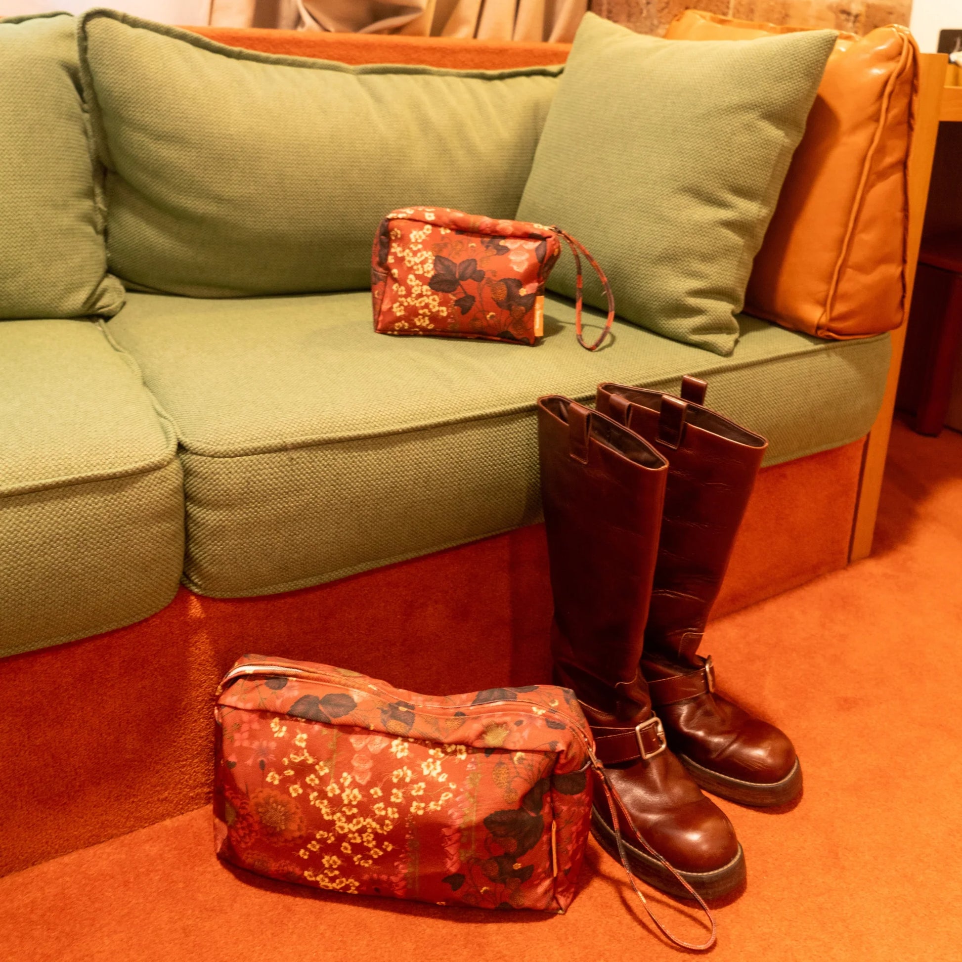 Made from durable, eco-friendly fabric made using recycled PET bottles, now in a LARGE SIZE featuring a longer loop strap that can slip over your hand to make it easy to carry, large enough for all your hair care for travelling, picnics and to the beach.