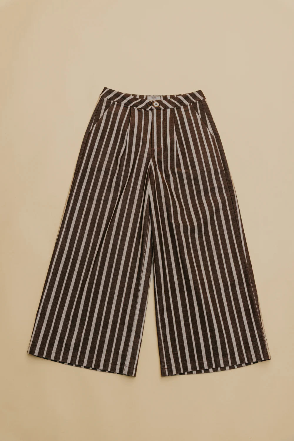 The Gabbi pants are about to become your new go-to. Made from soft, lightweight cord, these mid-waisted, striped pants in brown and cream offer a relaxed, flowy fit that’s perfect for all-day comfort. The flattering waistline with a button fastening and slight pleat adds the just the right amount of detail. Whether you’re pairing them with a casual tank or layering with a graphic tee, these pants are versatile, comfy, and ready for anything.