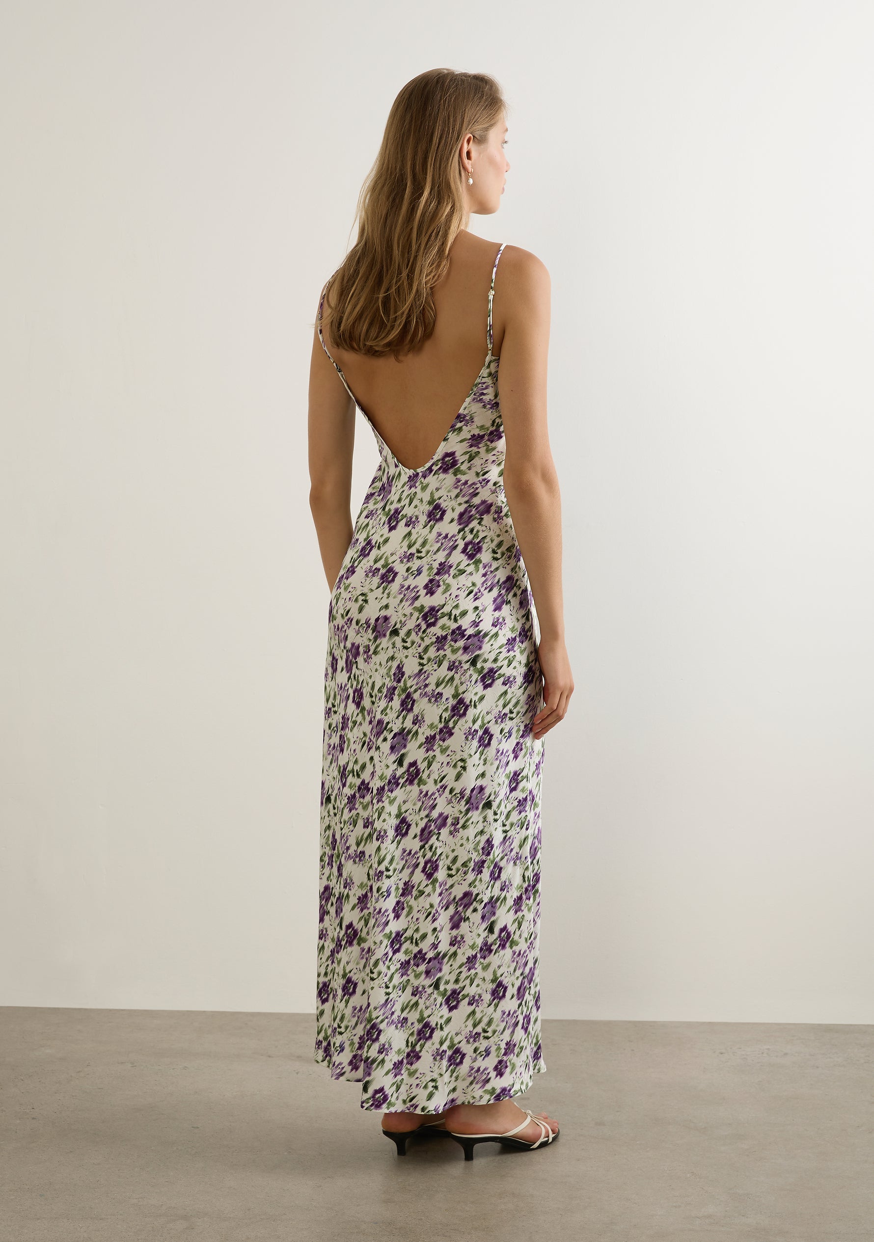 - Flattering bias-cut silhouette that fits the shape of your body and falls to a draped hem