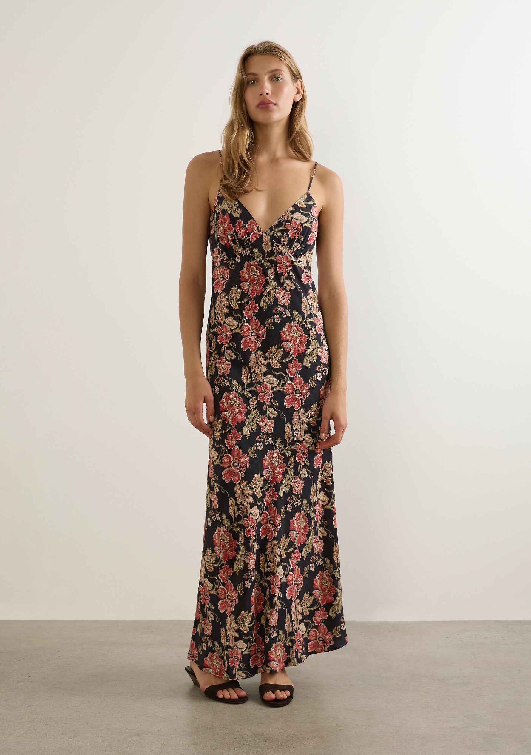 The Kalinda Maxi Dress in Vesper Floral is a striking new slip maxi, crafted in our silky floral textured viscose jacquard. With a flattering V-neckline, supportive bust, and a scoop back that enhances its bias-cut shape, this style skims the body beautifully before falling into a graceful drape. Ultra-flattering and feminine, it’s the dress to ensure you stand out at your next event — from Christmas Day to New Year’s Eve.