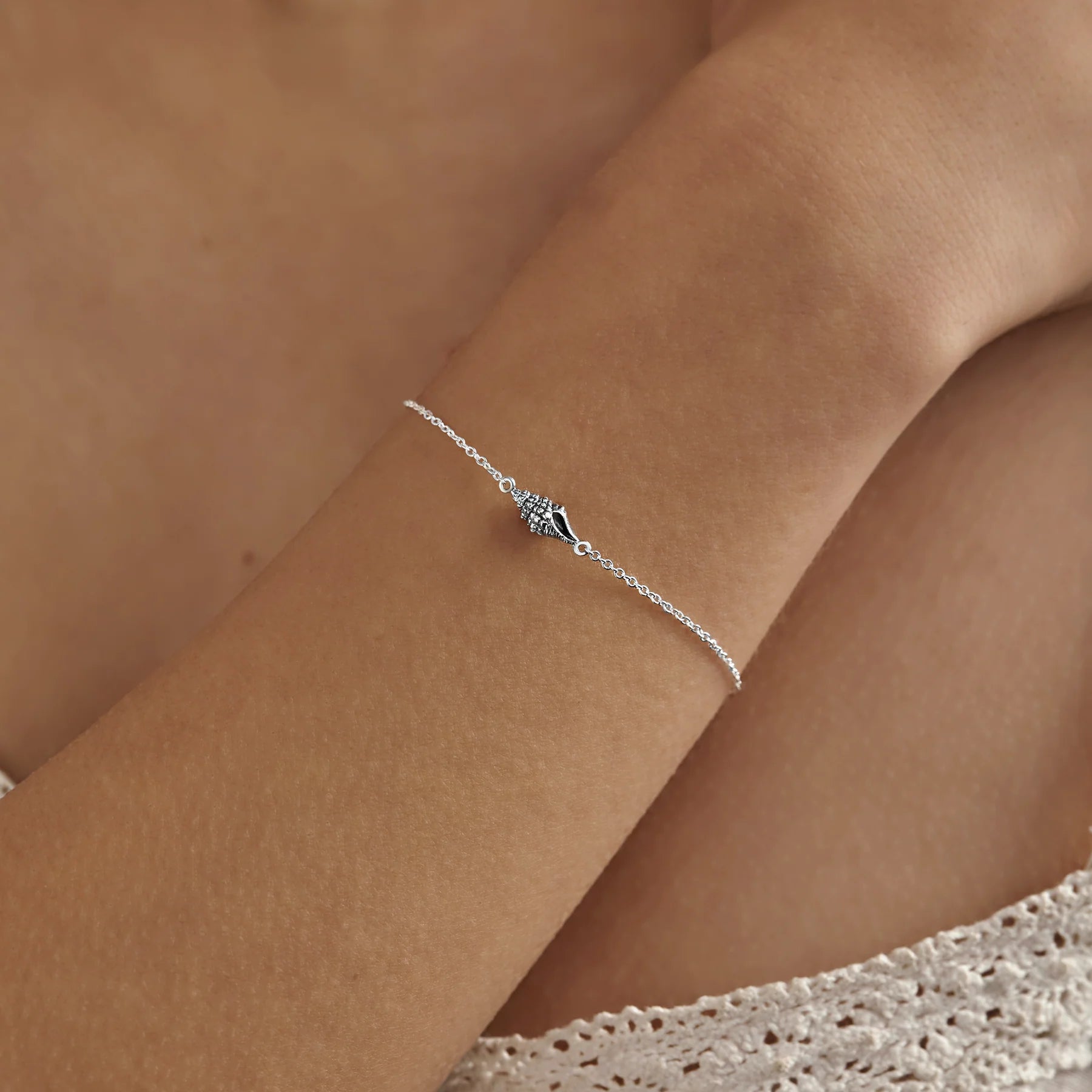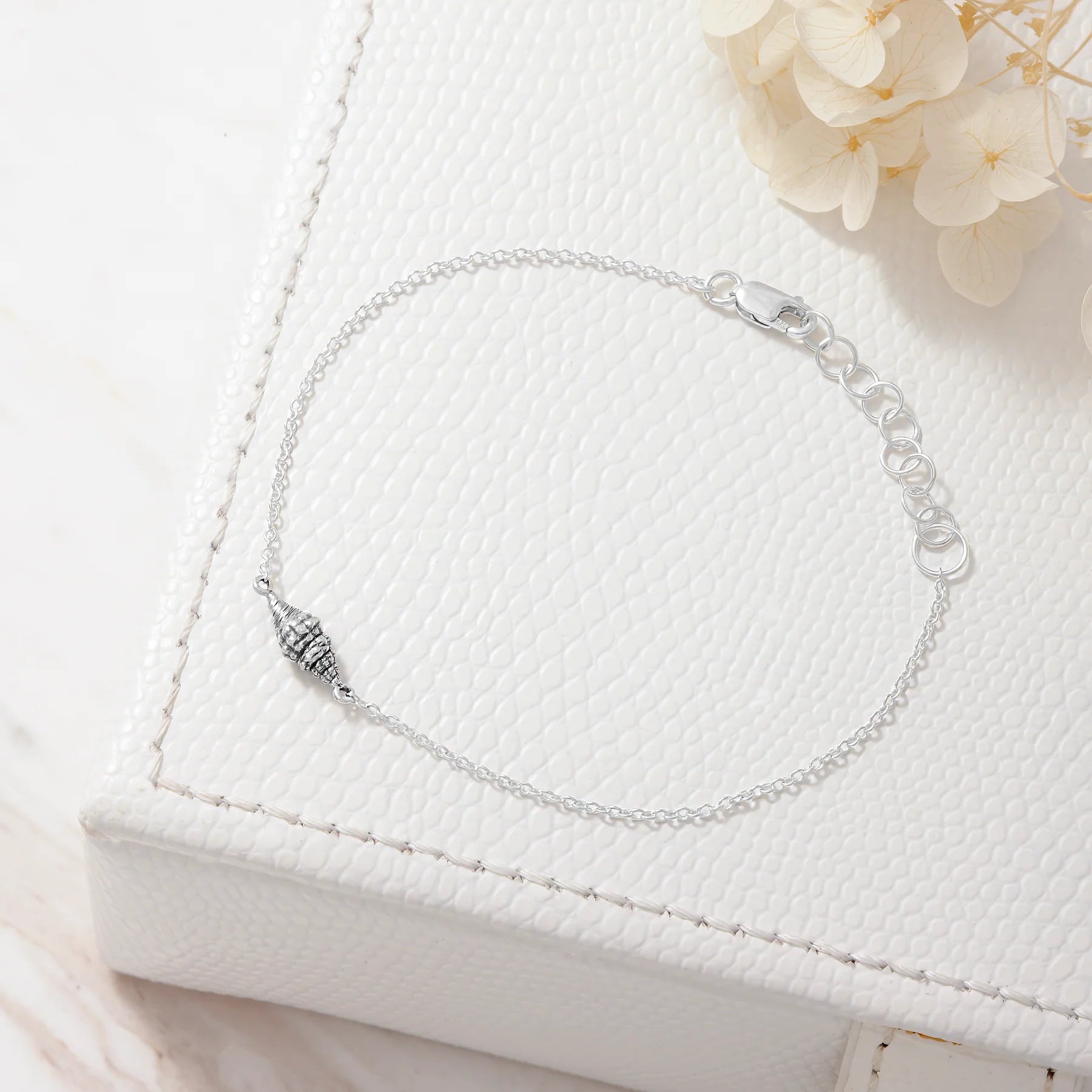 Embody the essence of the sea with our Spiral Shell Bracelet, an oceanic treasure intricately crafted from glistening sterling silver, brimming with coastal charm.