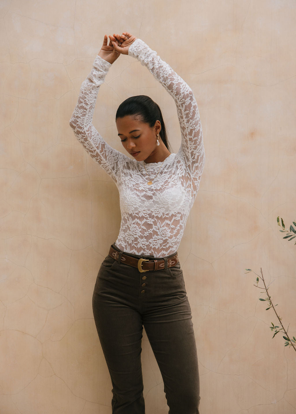 Perfect for layering, our White Lace Layering Top is a long-sleeve textured mesh essential.
